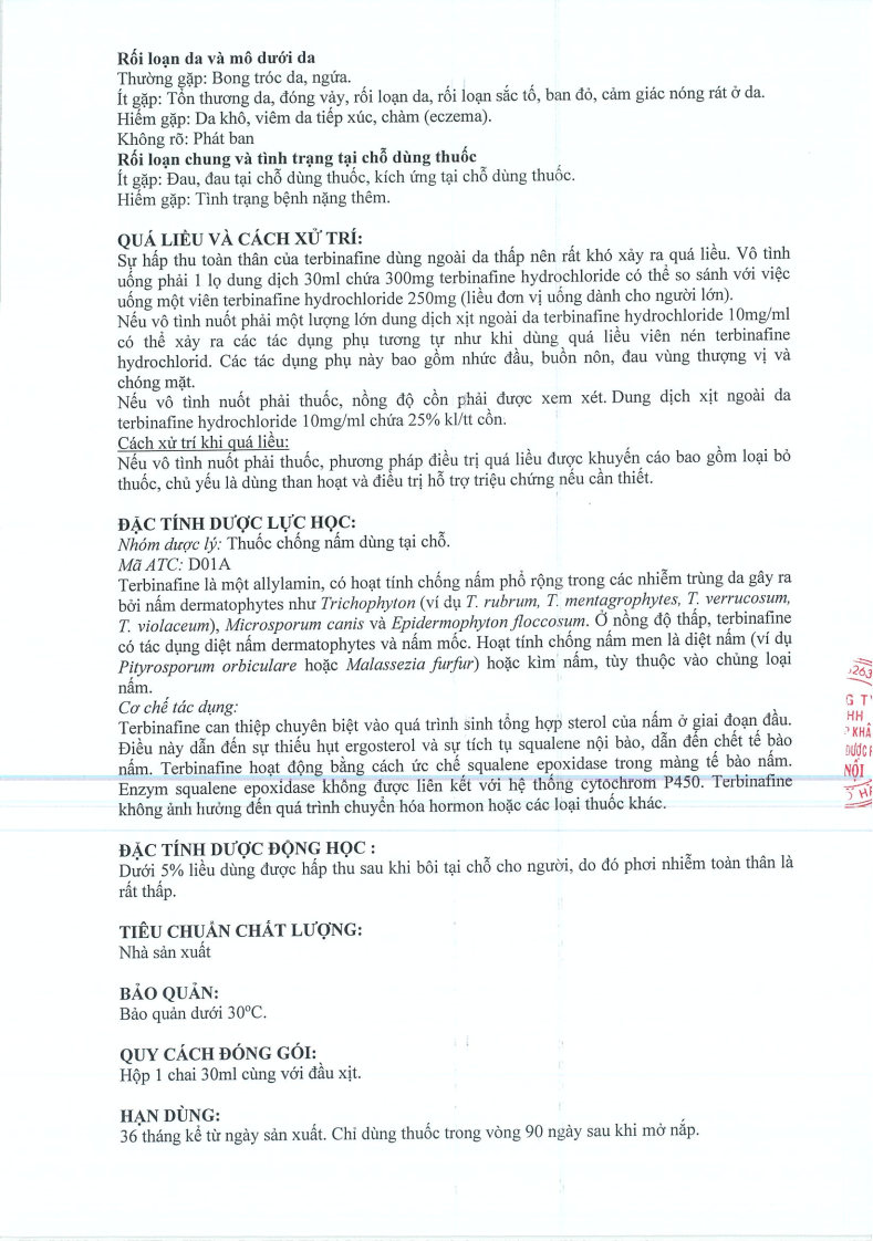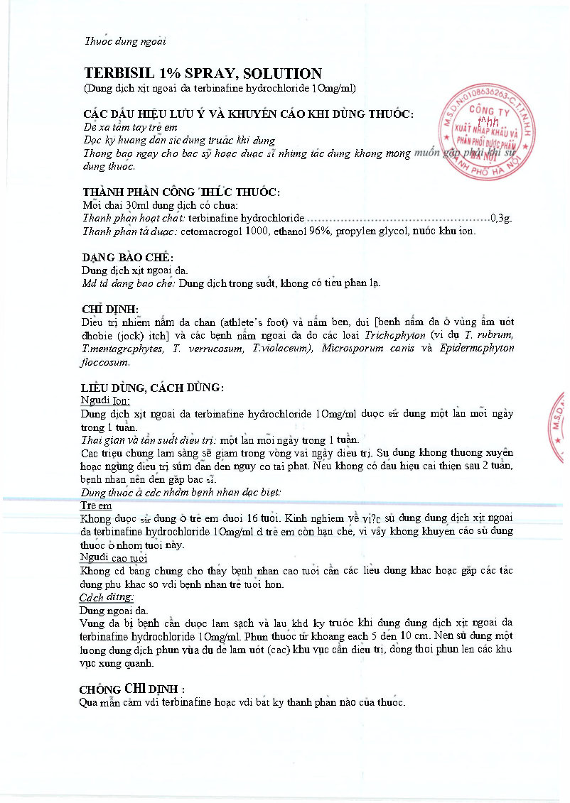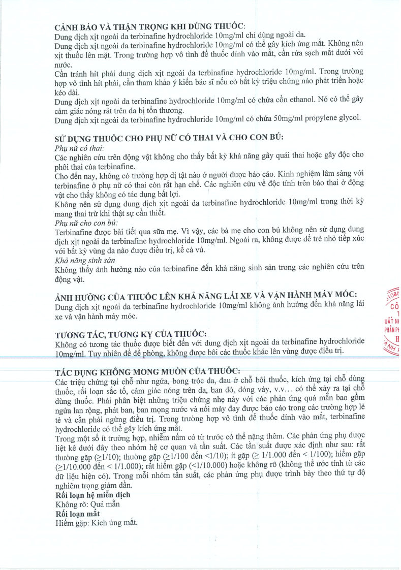 TERBISIL 1% SPRAY, SOLUTION (Dung dich xịt ngoài da terbinafine hydrochloride 10mg/ml)