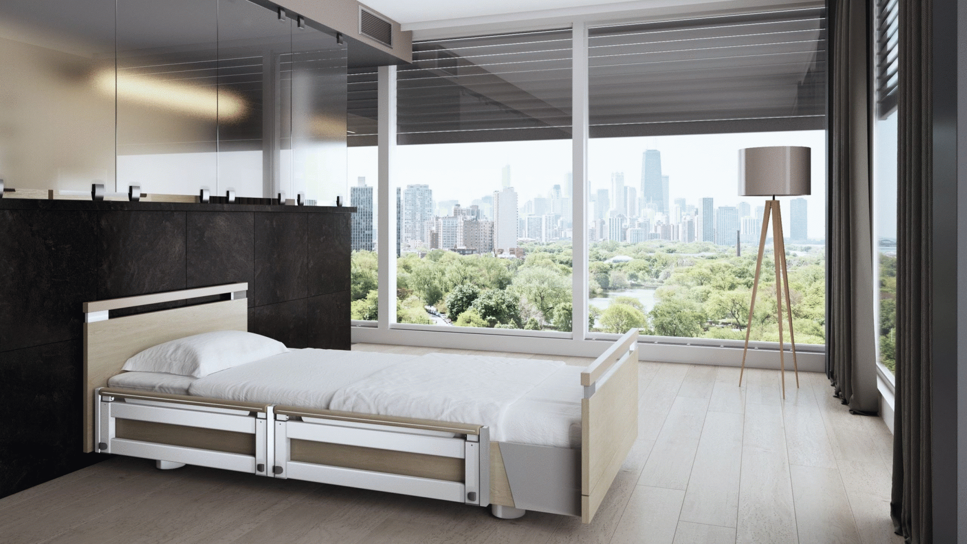 - Các bánh xe được che phủ với trụ nhôm giúp tạo sự chắc chắn và sang trọng cho giường.